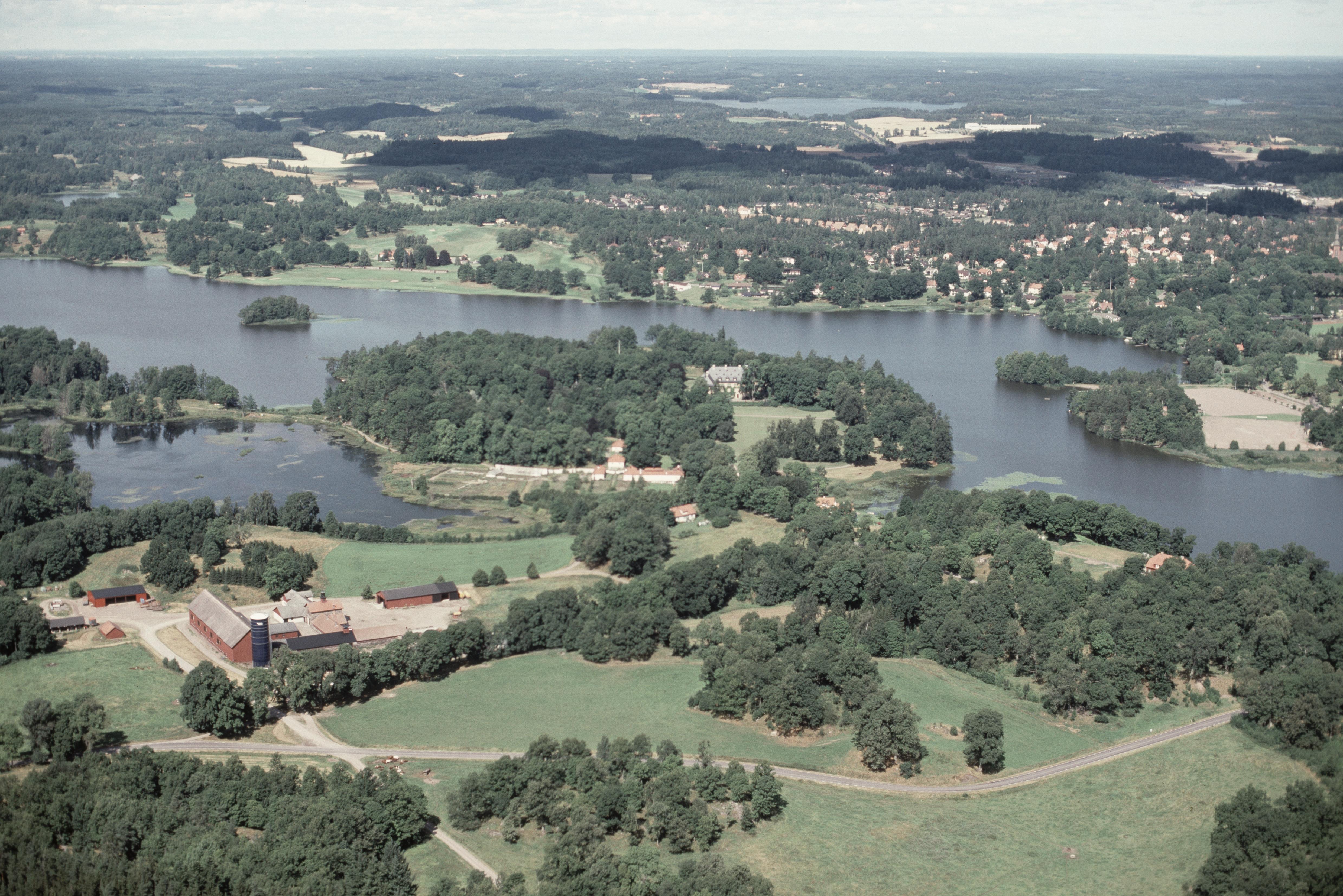 Adelsnäs herrgård / säteri / baroni vid Bysjön i sydvästra delen av tätorten Åtvidaberg. Lite väster om slottet finns vägmärke RAÄnr Åtvid 17:1. Bilden är tagen mot (väderstreck): N