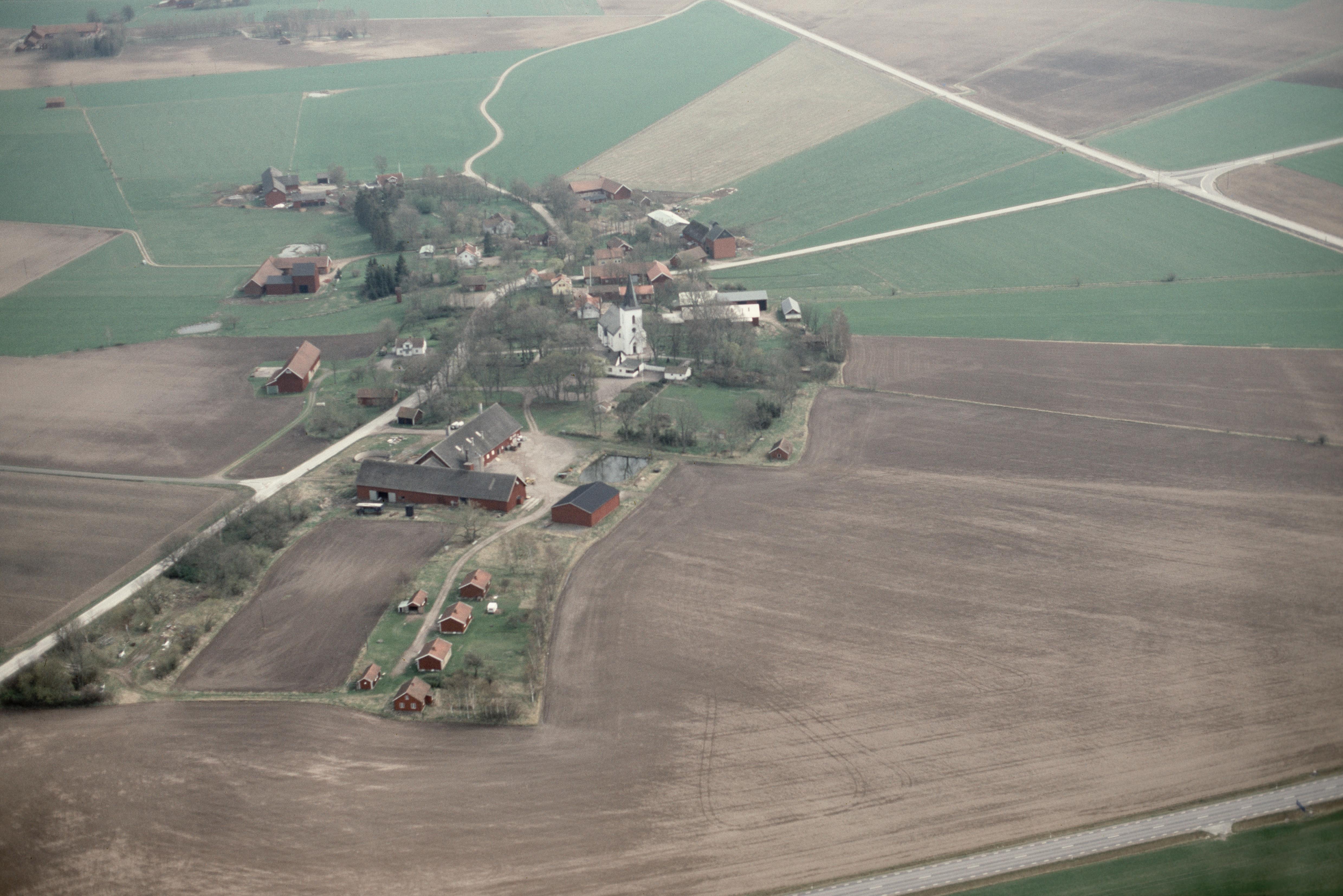 Longs kyrka och kyrkby. Bilden är tagen mot (väderstreck): SO