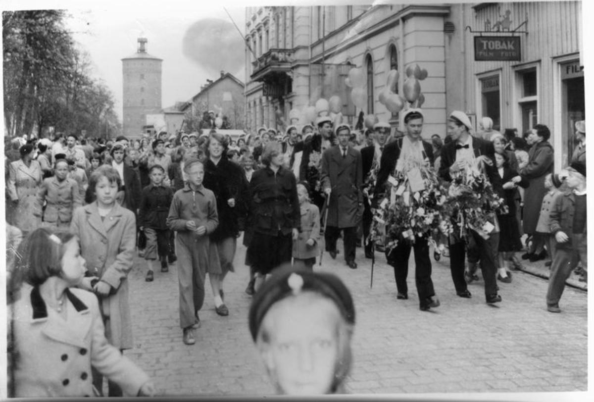 Studentexamen, kortegen på Kungsgatan. Vänersborg
