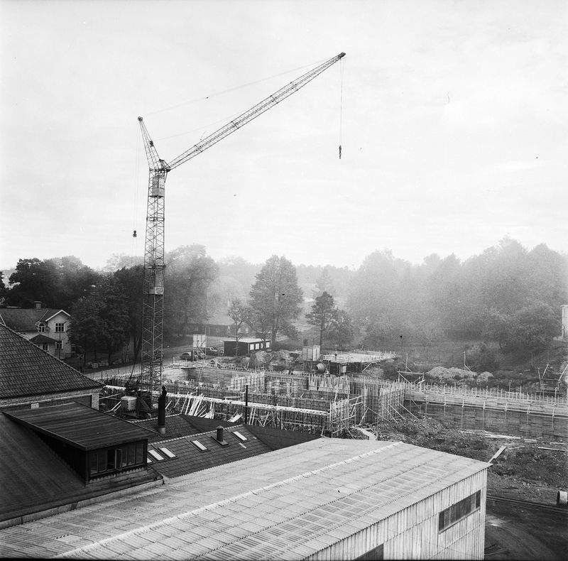 Titel: Wargöns AB. Byggnation av PM 5 1959-60. Foto och påförd text av dåvarande ritkontorschefen Ragnar Söderberg.