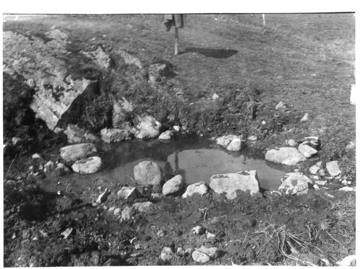 Krogs källa under iordningställandet. Resterna av den gamla kantskoningen har grävts fram. Brätte Vassända-Naglum