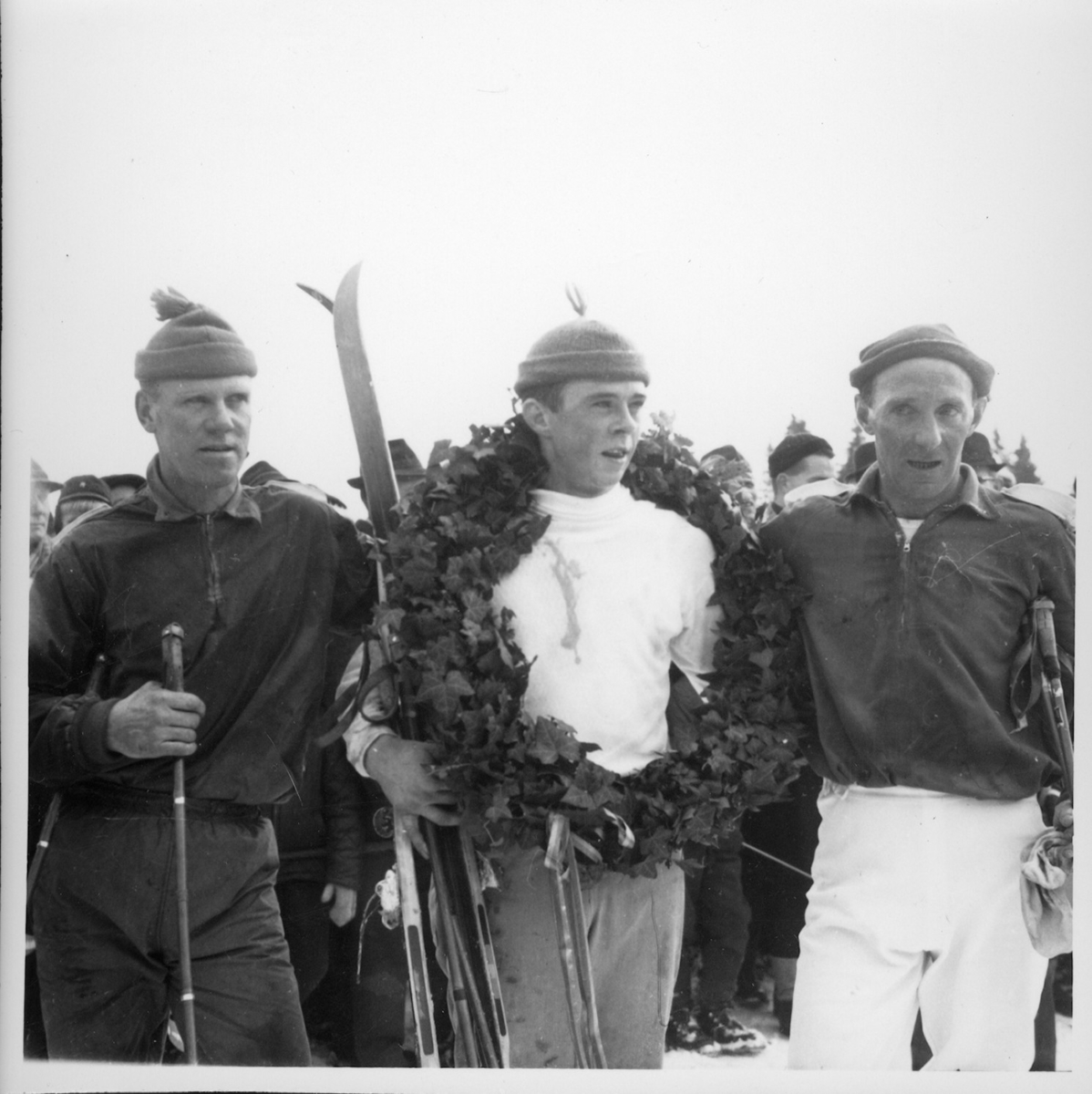 Höhsäter, Karolinerloppet. Vinnaren med kransen runt halsen.