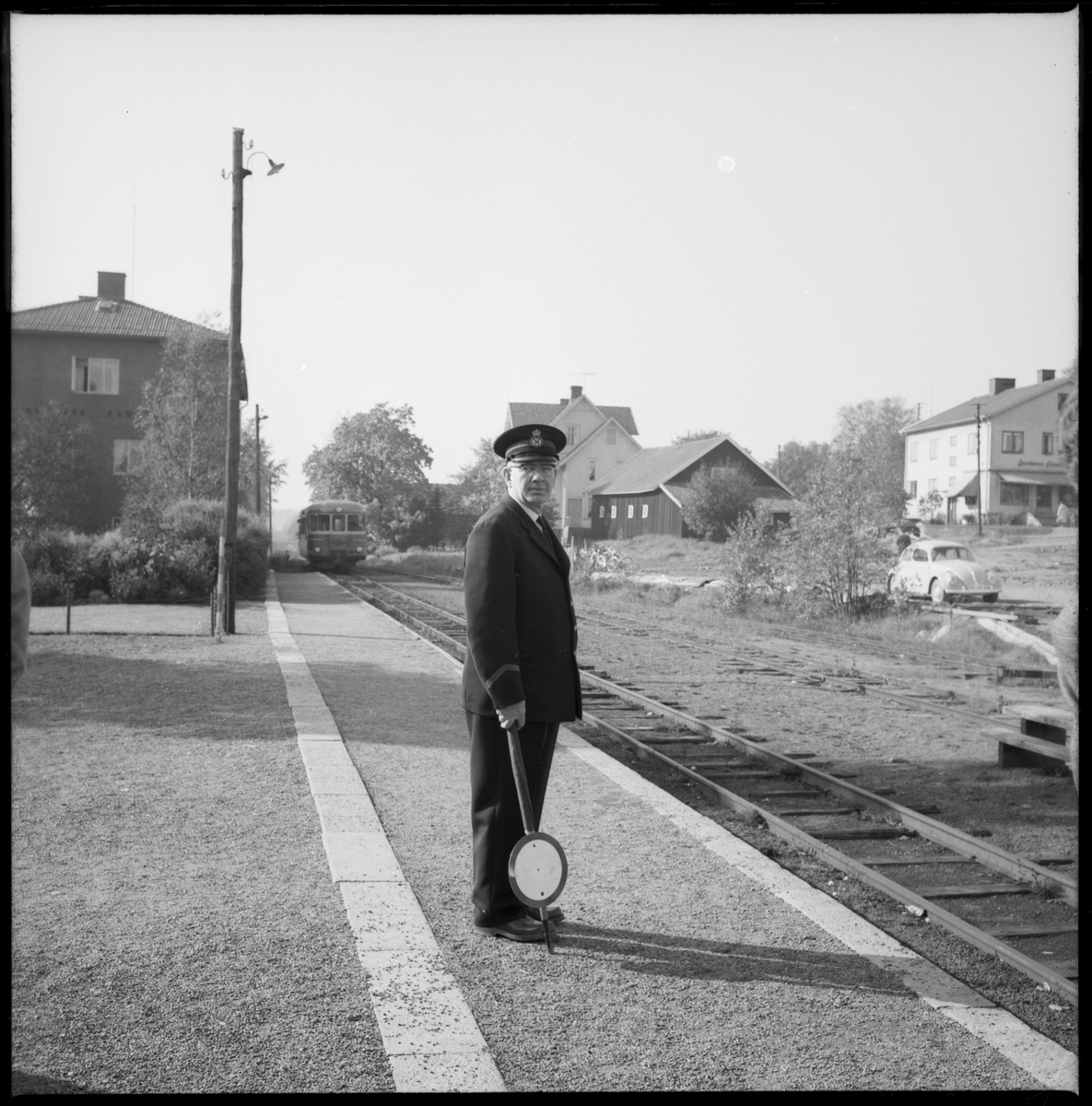 Lelångenbanan. Näst sista resan före nedläggandet, med utgång från Uddevalla. Färgelanda. Stationsmästare Hjalmar Segerlind.