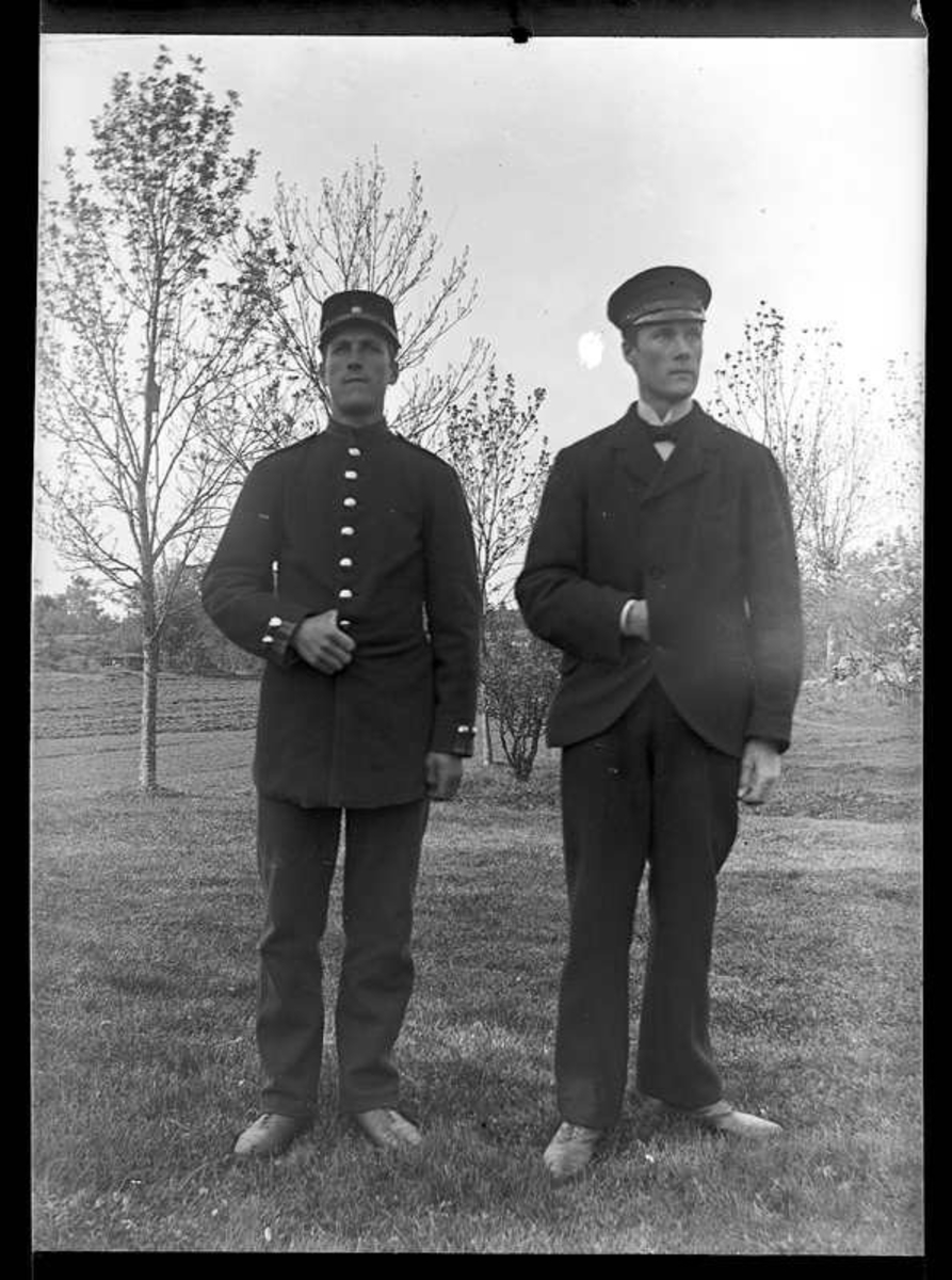 Abraham Jonsson, Hjärtum 1875-01-13 i soldatuniform tillsammans med brodern Olof Jonsson, Hjärtum 1882-11-15