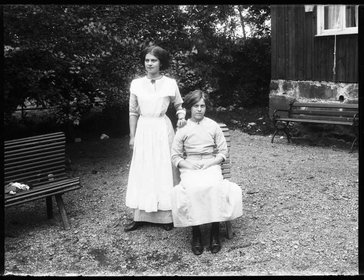 Fotot taget på den gamla prästgården i Tungebo. Två unga damer troligen tjänstefolk - okända.