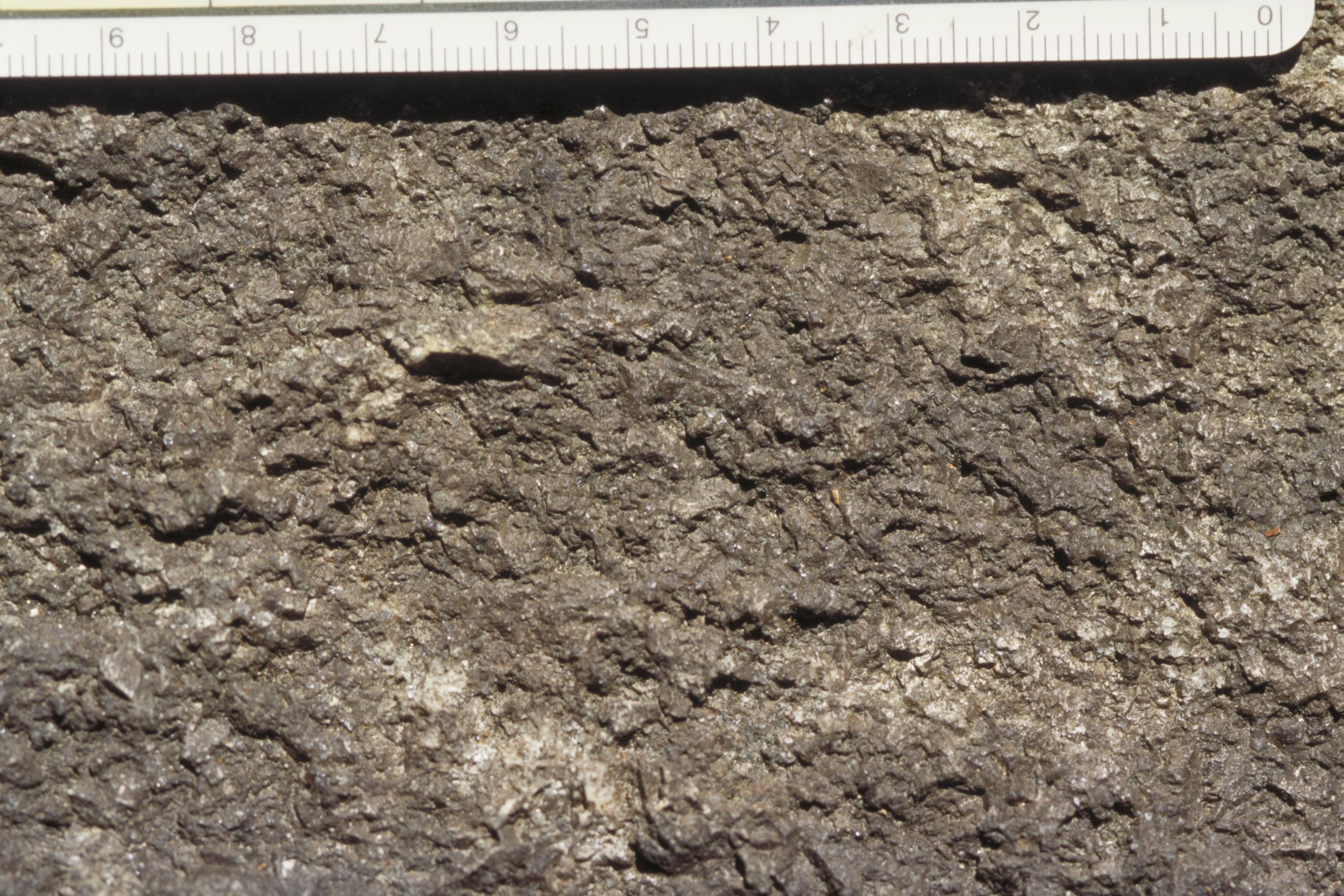 Ojämn, vittrad yta med svart beläggning, Askum 2:1.