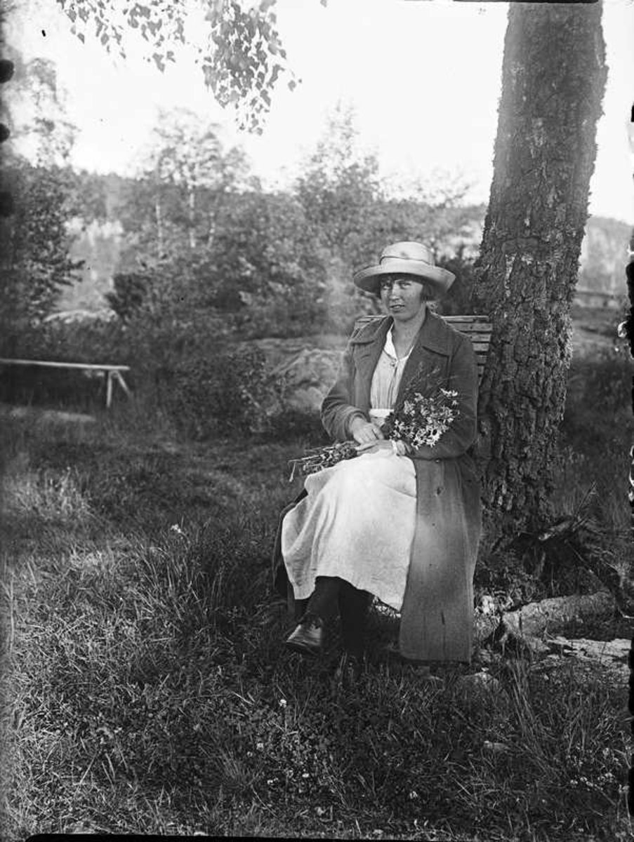 Kvinna. Halle eller Hunneberg i bakgrunden.