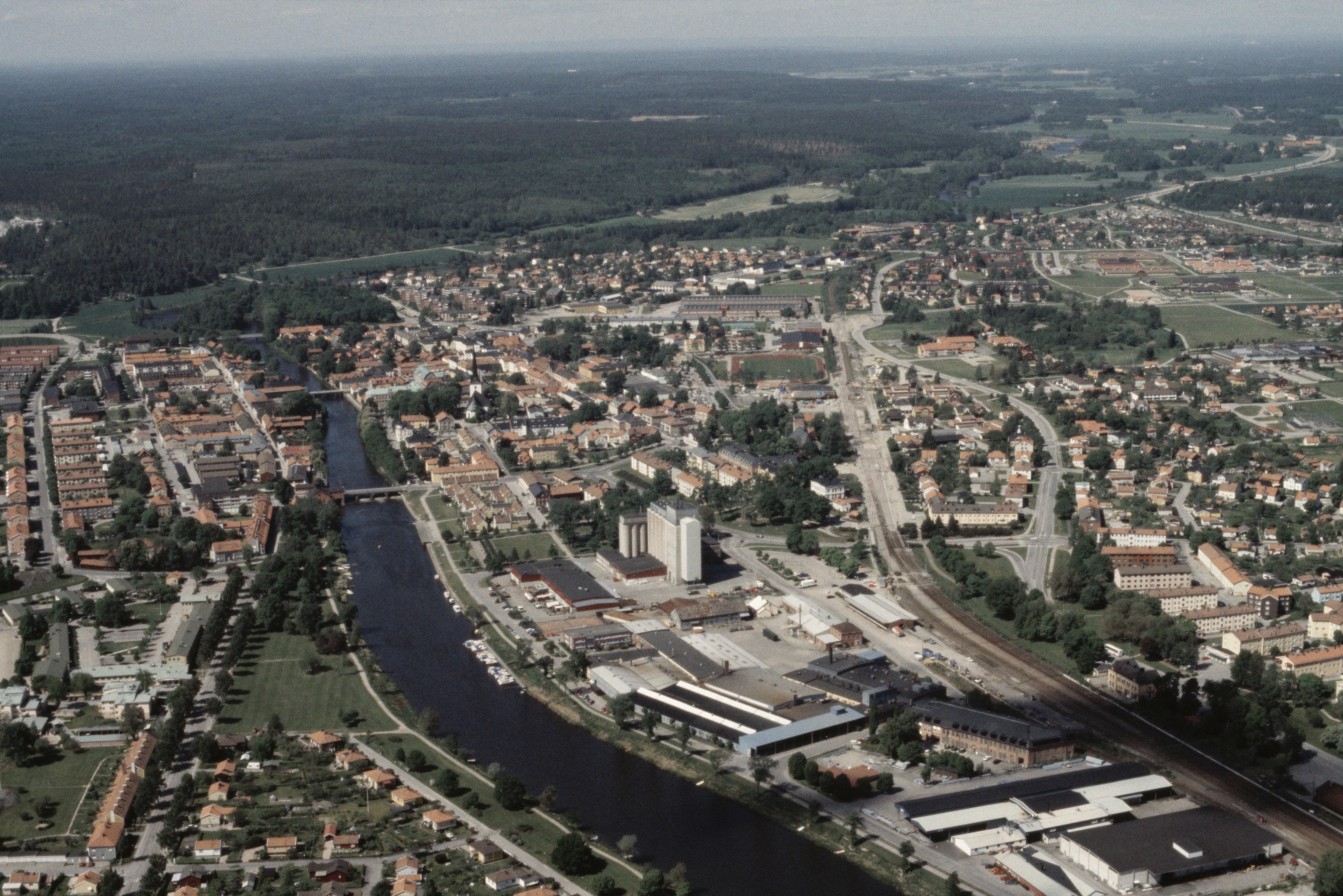 Arboga innerstad. Heliga Trefaldighetskyrka uppe till vänster. Bilden är tagen mot (väderstreck): V