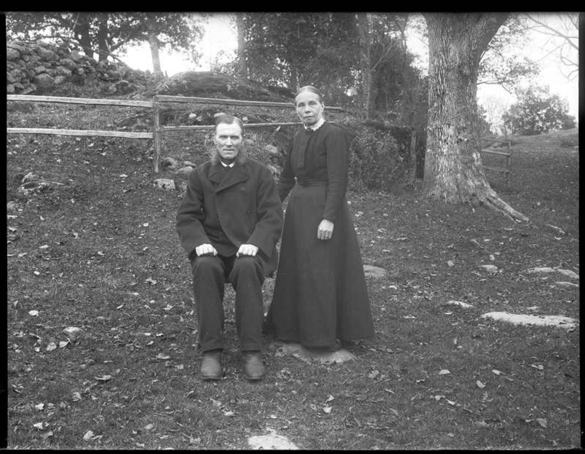 Josef Nilsson, Herrestad f1857-12-04 och hans hustru Anna Ulrika Andreasdotter, Forshälla f1856-01-27 i trädgården på gården Lunden, Ingelstorp.