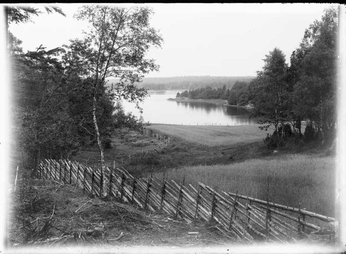 Fotot visar viken mellan Stenbacken och Öresbo, Öresjö, och med ett vackert byggt skyhag (skihag) i förgrunden.