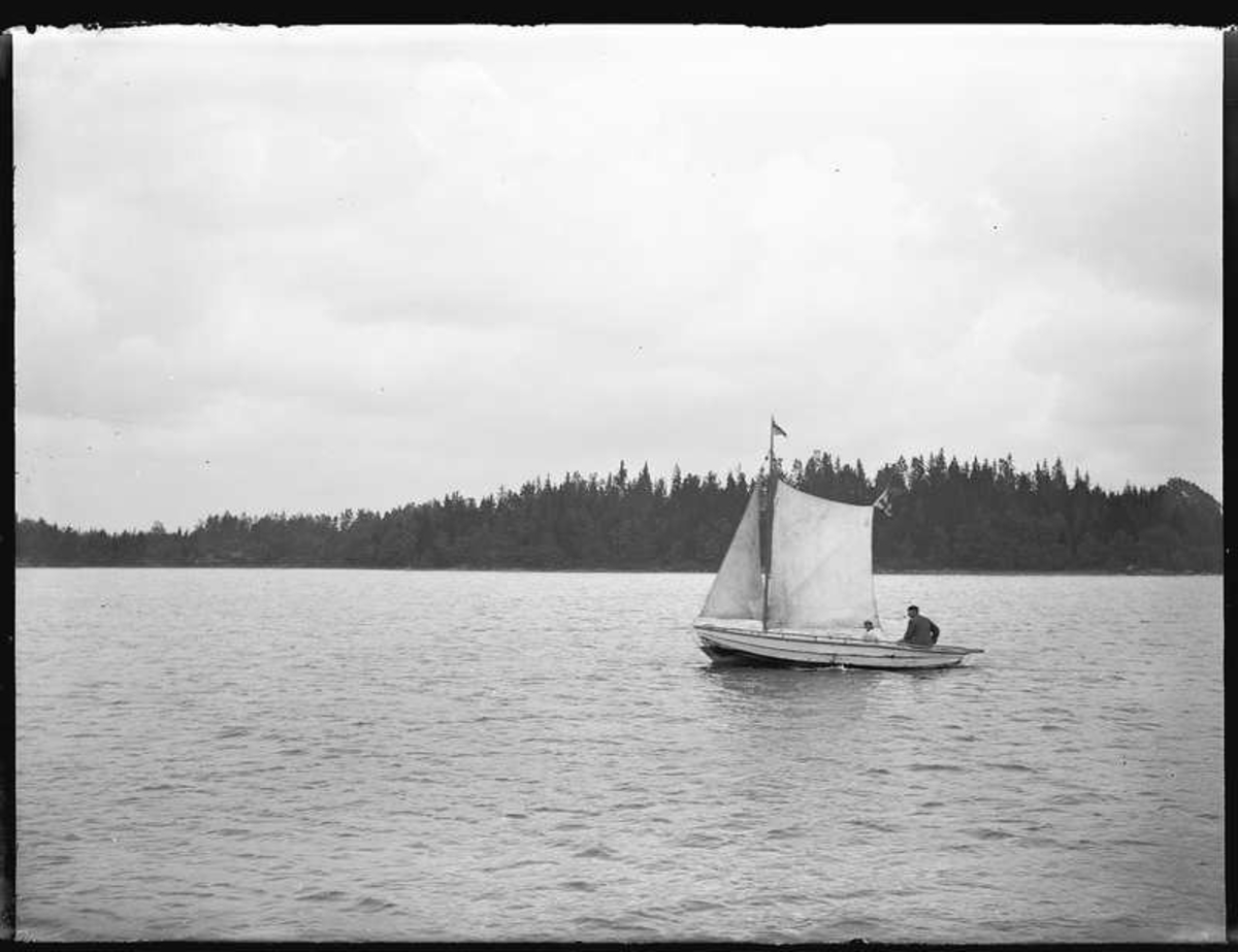 Ernst Gustaf Karlinder Altuna 1870-05-03 och dottern Anna Lisa 1896-06-25 i segelbåt på Öresjö.