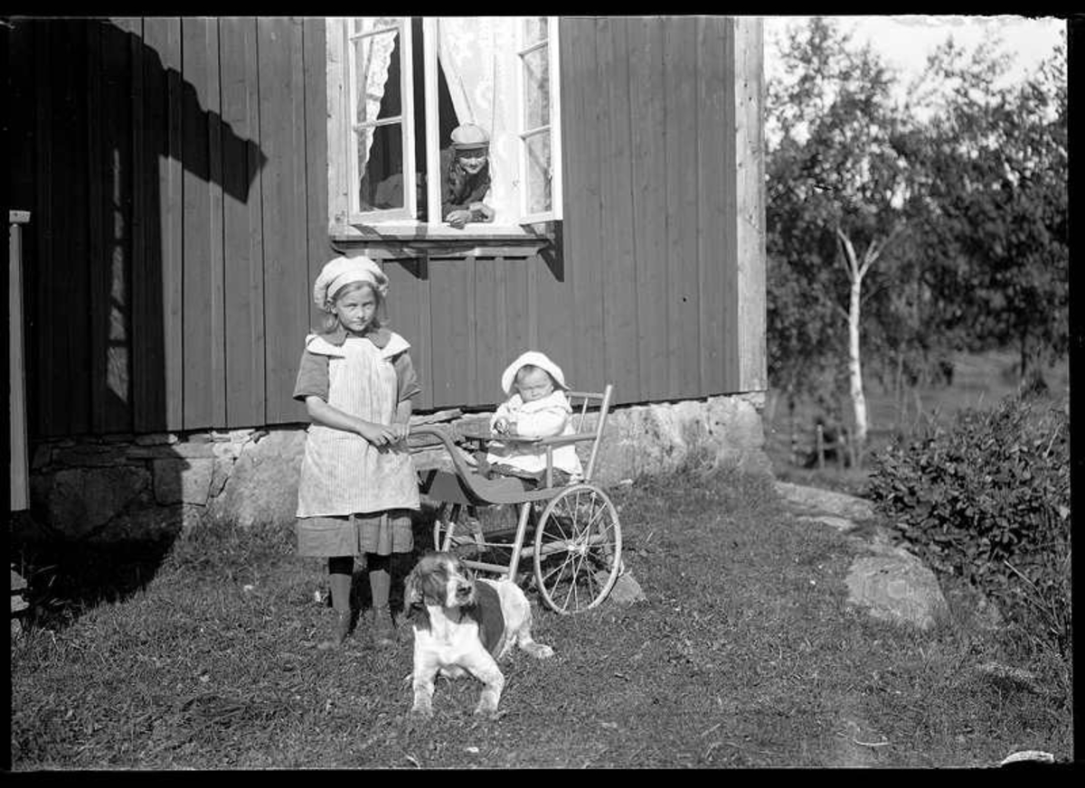 Olof Jonssons text: "Karlinders barn med hund, 1 juli 1909".