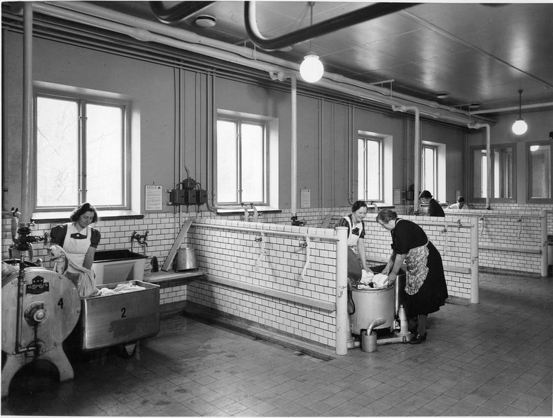 Bruket höll sig med en imponerande tvättstuga, som drevs med överskottsånga från bruket. Den klarade behovet av tvätt, strykning och mangling för 500 familjer, som hade rätt och möjlighet att utnyttja anläggningen. Årskapaciteten var 100 ton. Tvättstugan, som låg i hörnet vid parkeringen byggdes 1942 och avvecklades på 1960-talet. Henning Jonsson var tvättmästare.