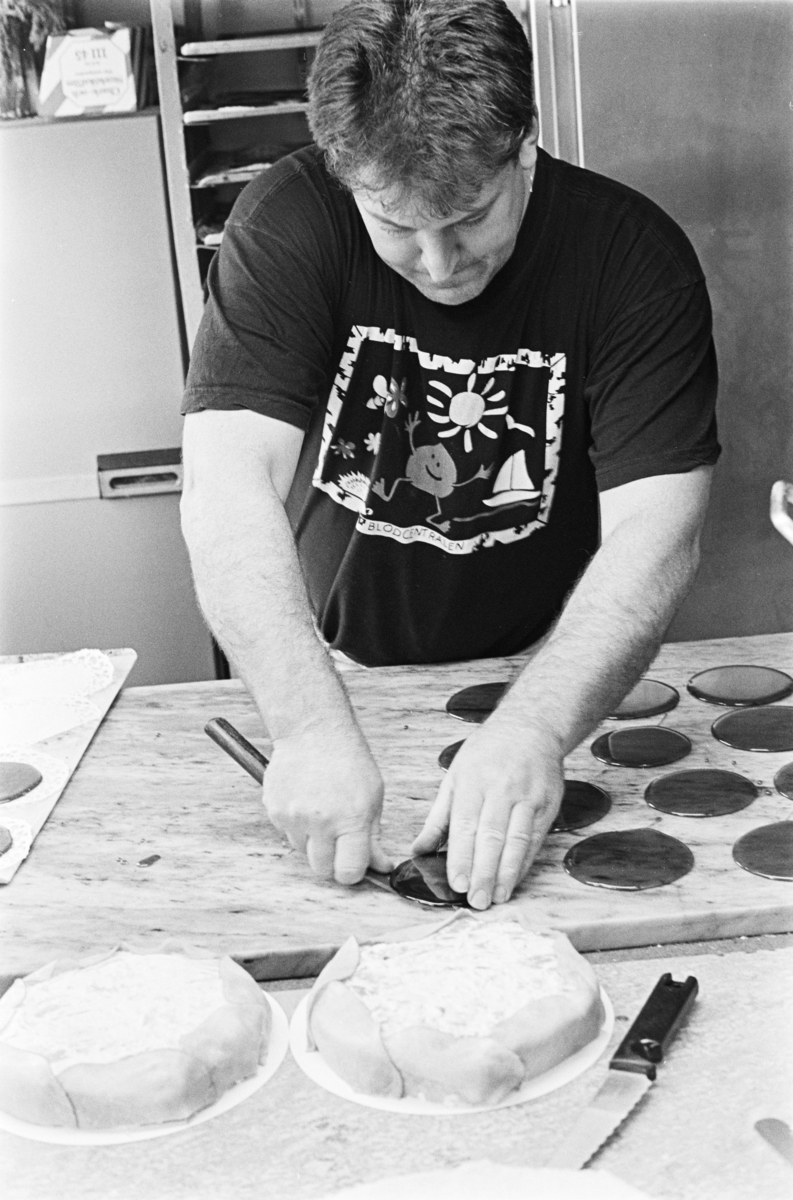Titel: Åmål, Ole Dahls bageri. Bakning av påskkakor