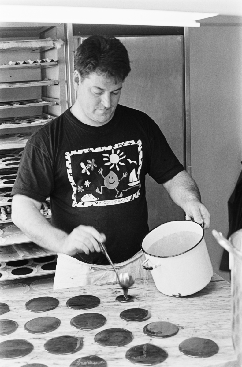 Titel: Åmål, Ole Dahls bageri. Bakning av påskkakor