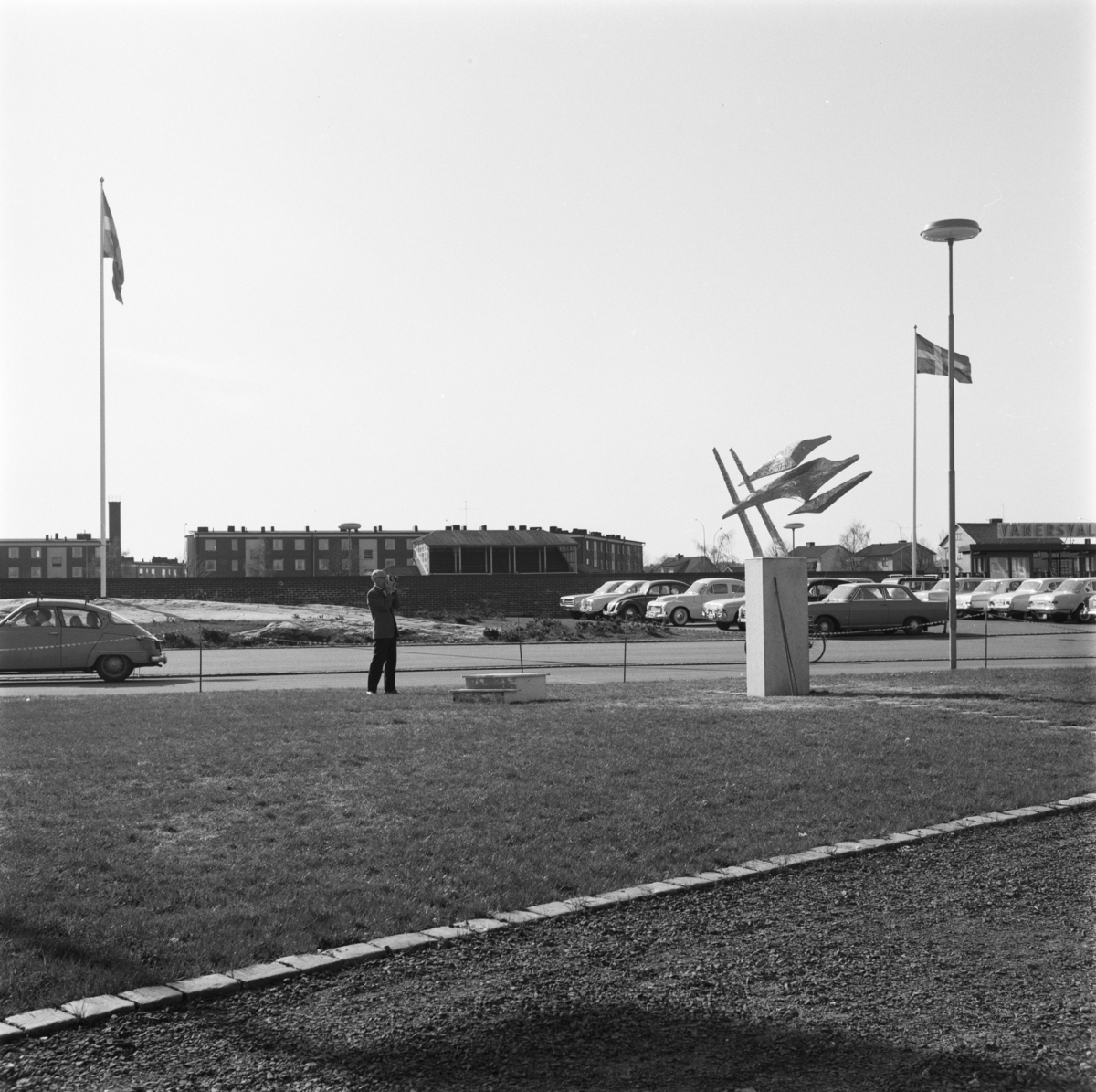 Titel: Vänersborg, idrottshuset. Invigning av Folke Truedssons skulptur ”Triad”