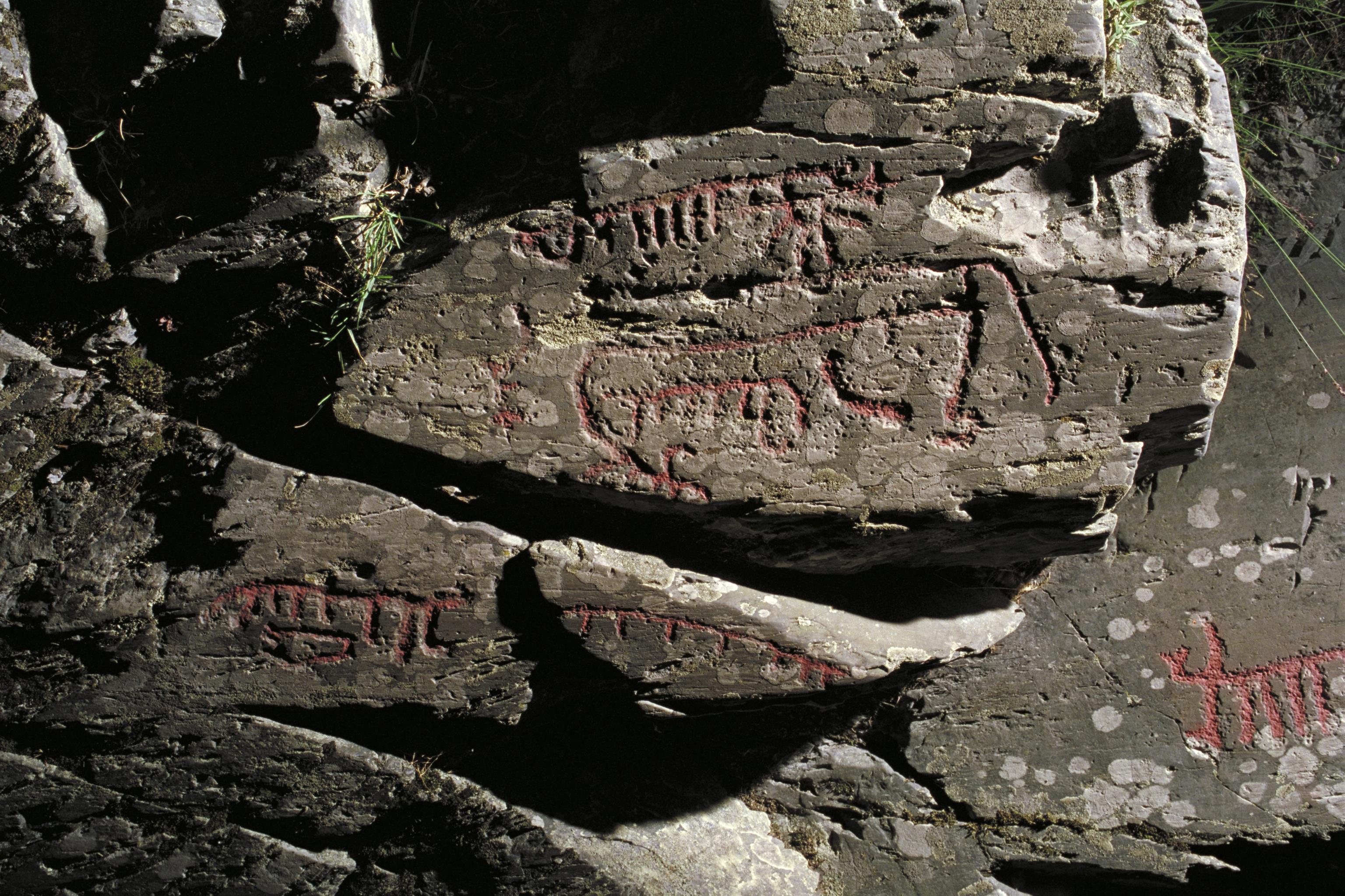 Tisselskog 15:1, hällens sydligaste del. Skeppsfigurer.