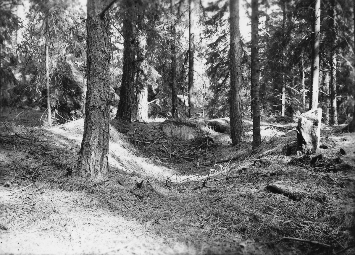 Stora Mellby. Hällkista i skogsmarken väster om Mellberg