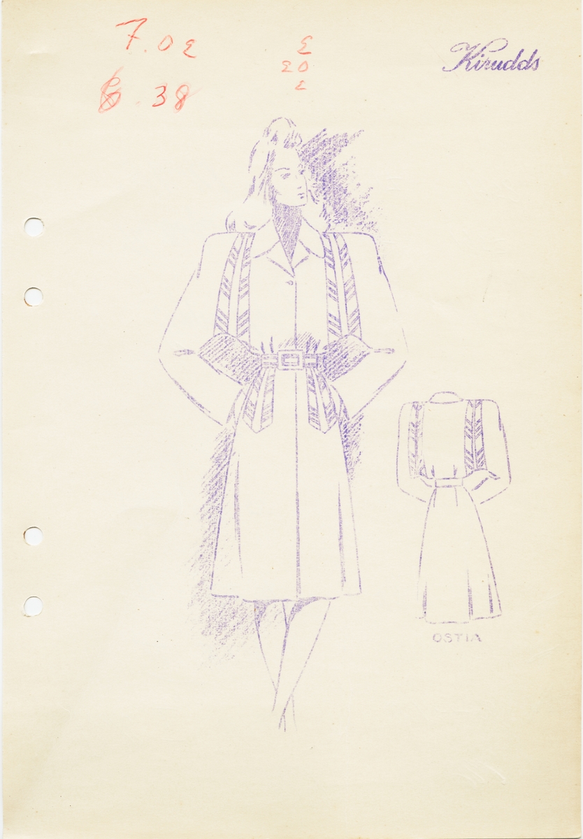 Modeskiss. Kirudds konfektionsindustri, Vänersborg.