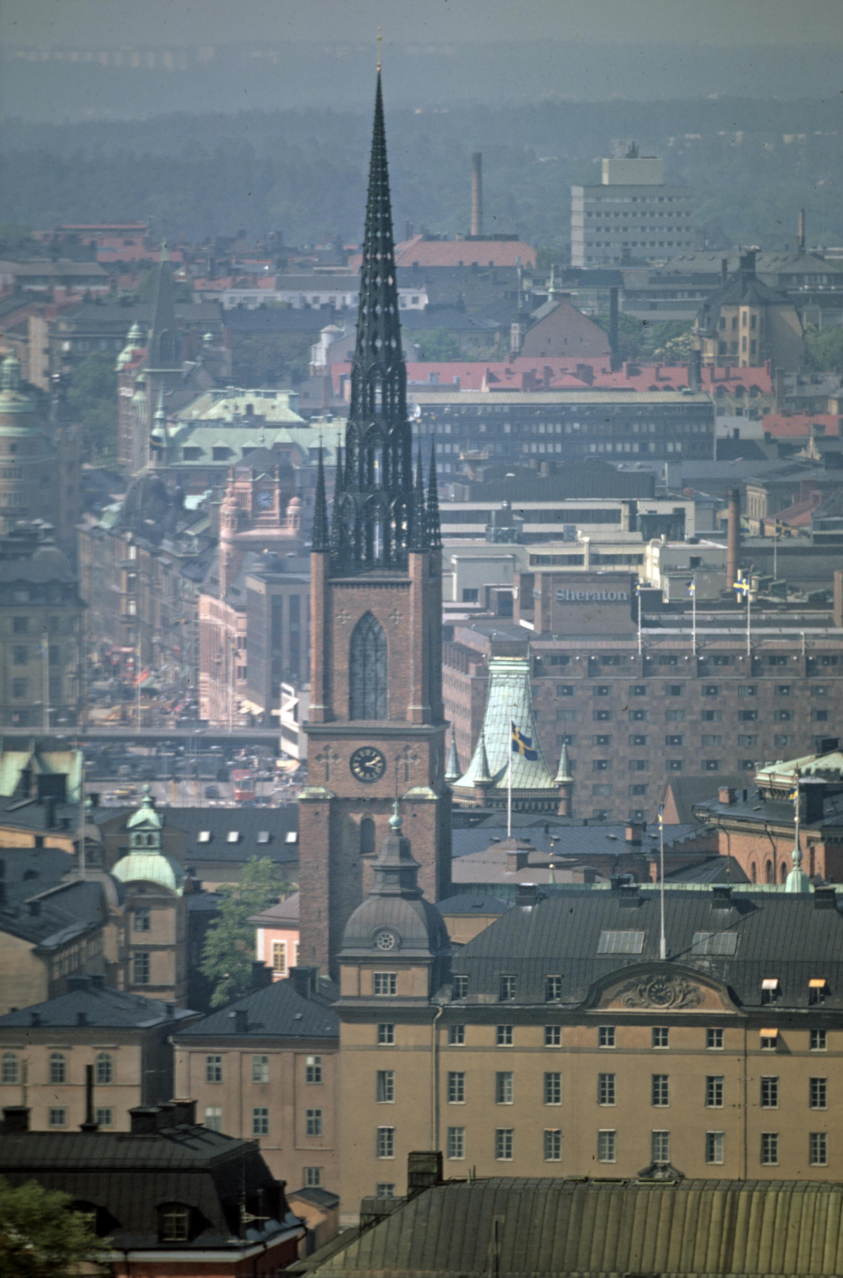 Riddarholmskyrkan och city från Söder Mälarstrand. Bilden troligen från början av 1970-talet.