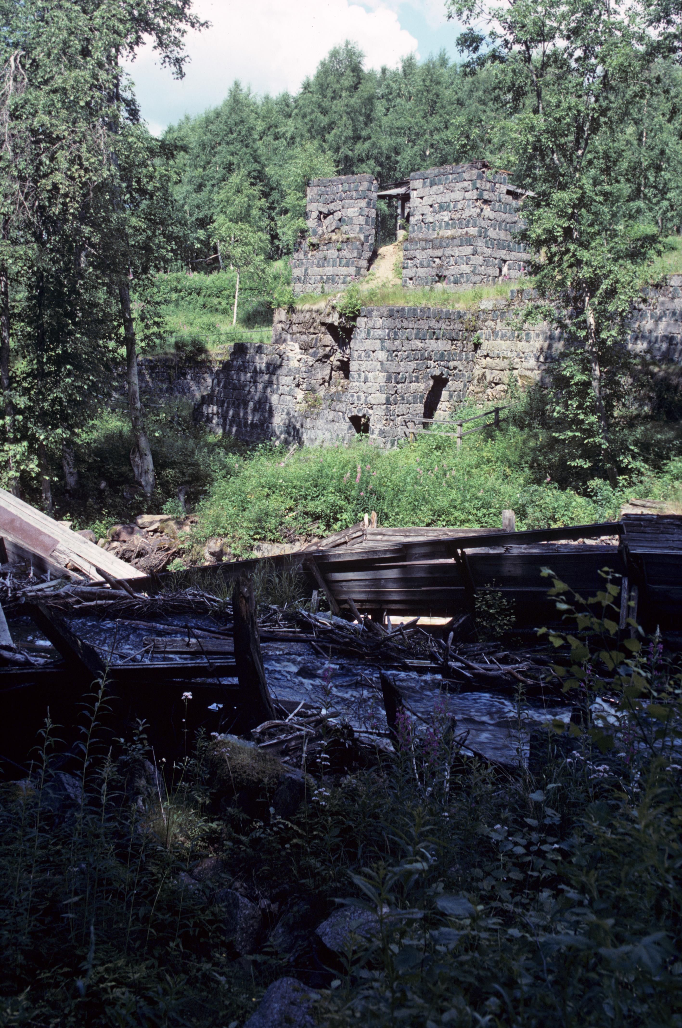 Vattendrag, i bakgrunden hyttan.