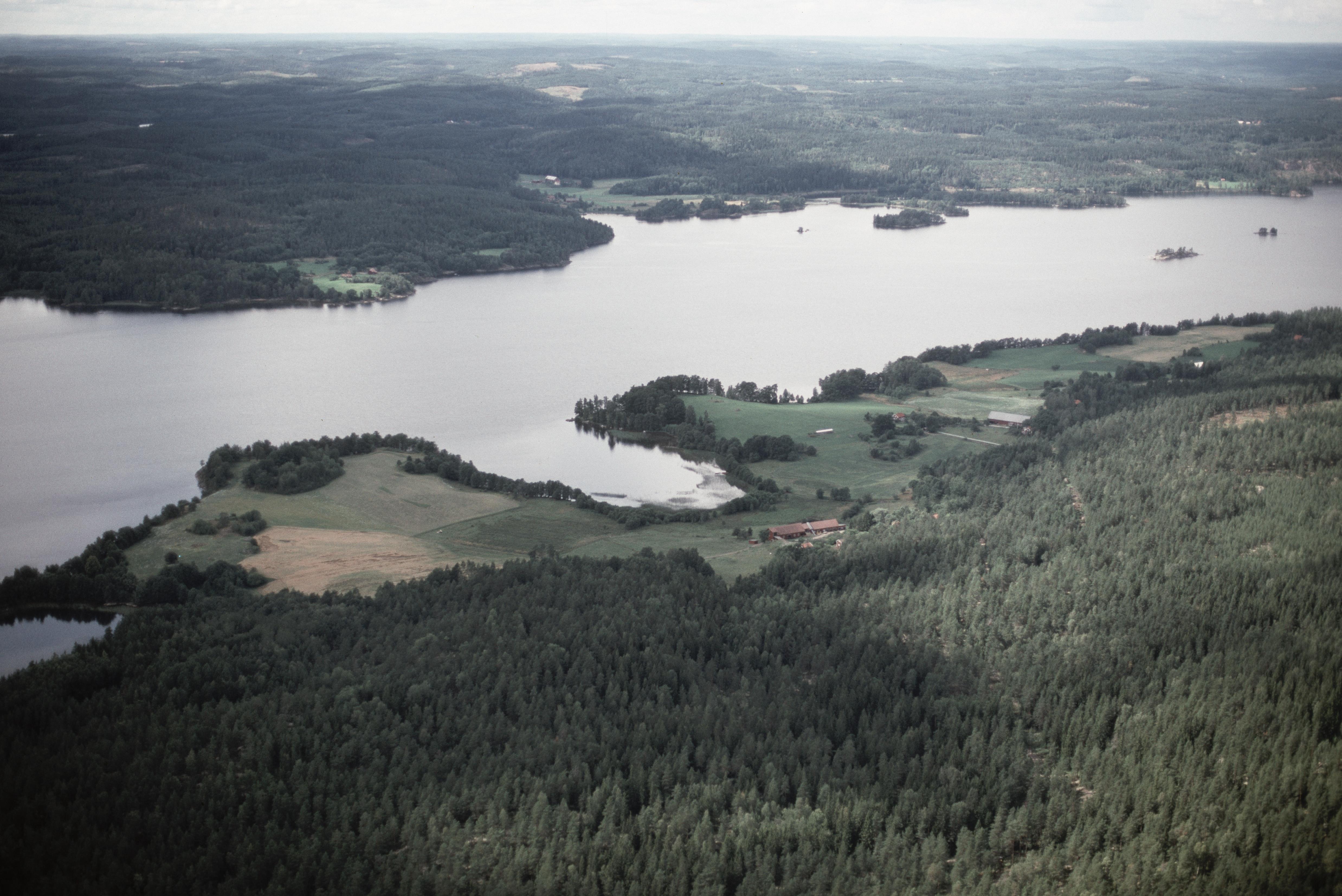 Jätteudden vid sjön Åsunden. Gravfält med skeppssättning, och domarring RAÄnr Horn 15:1. Bilden är tagen mot (väderstreck): V