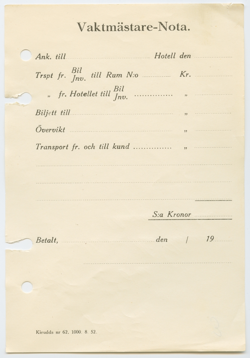 Vaktmästare Nota. Kirudds konfektionsindustri, Vänersborg.