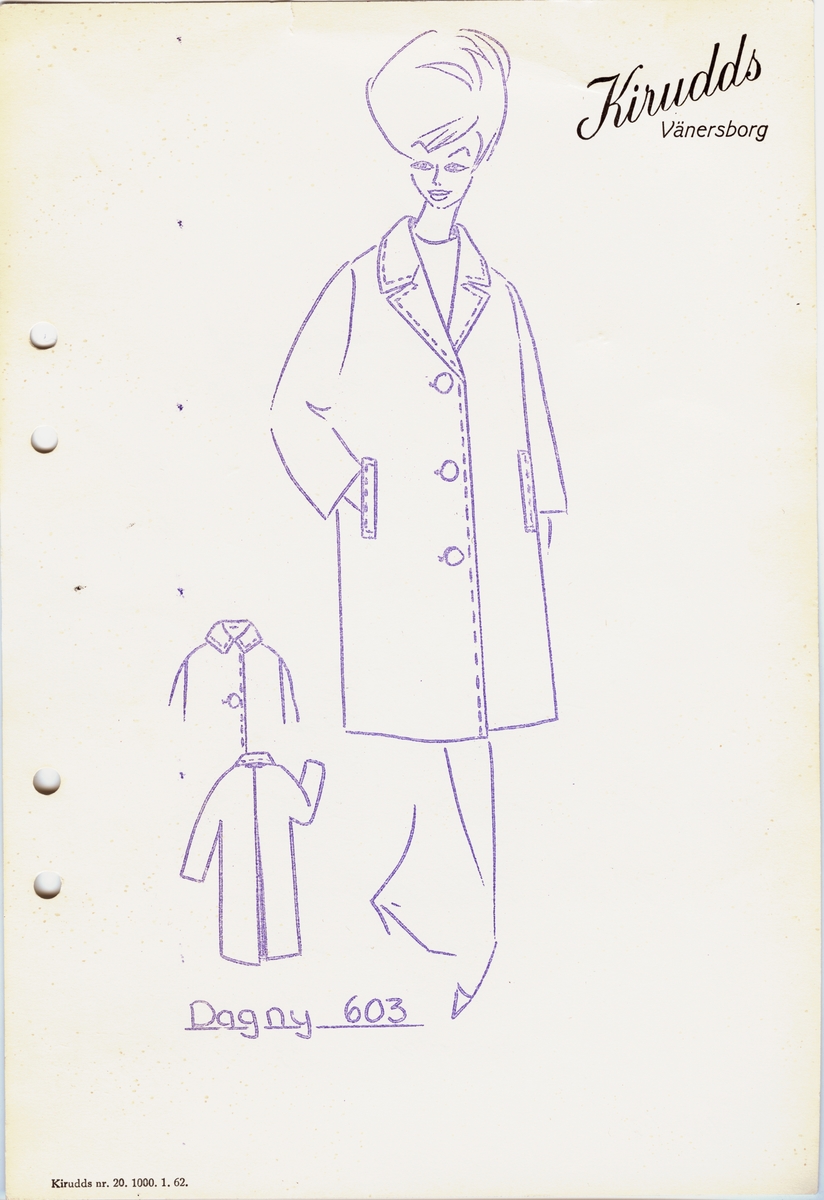 Modeskiss. Kirudds konfektionsindustri, Vänersborg.