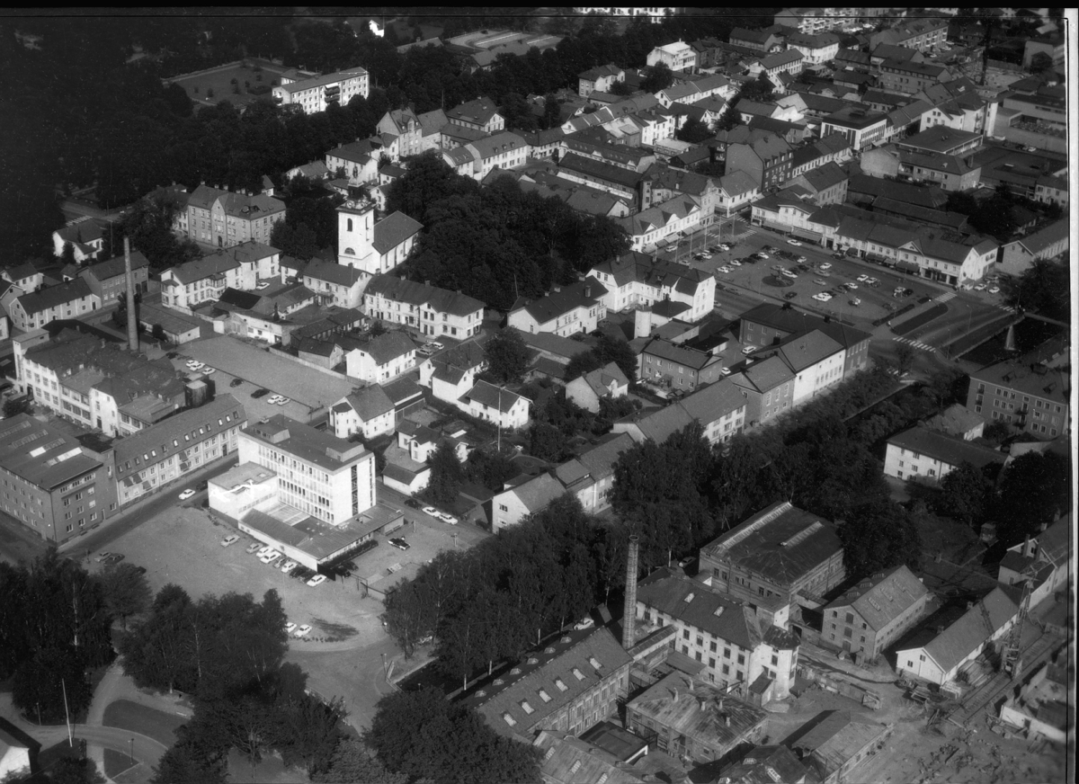 Alingsås Innerstaden med gamla Bomullsväveriet som rivs