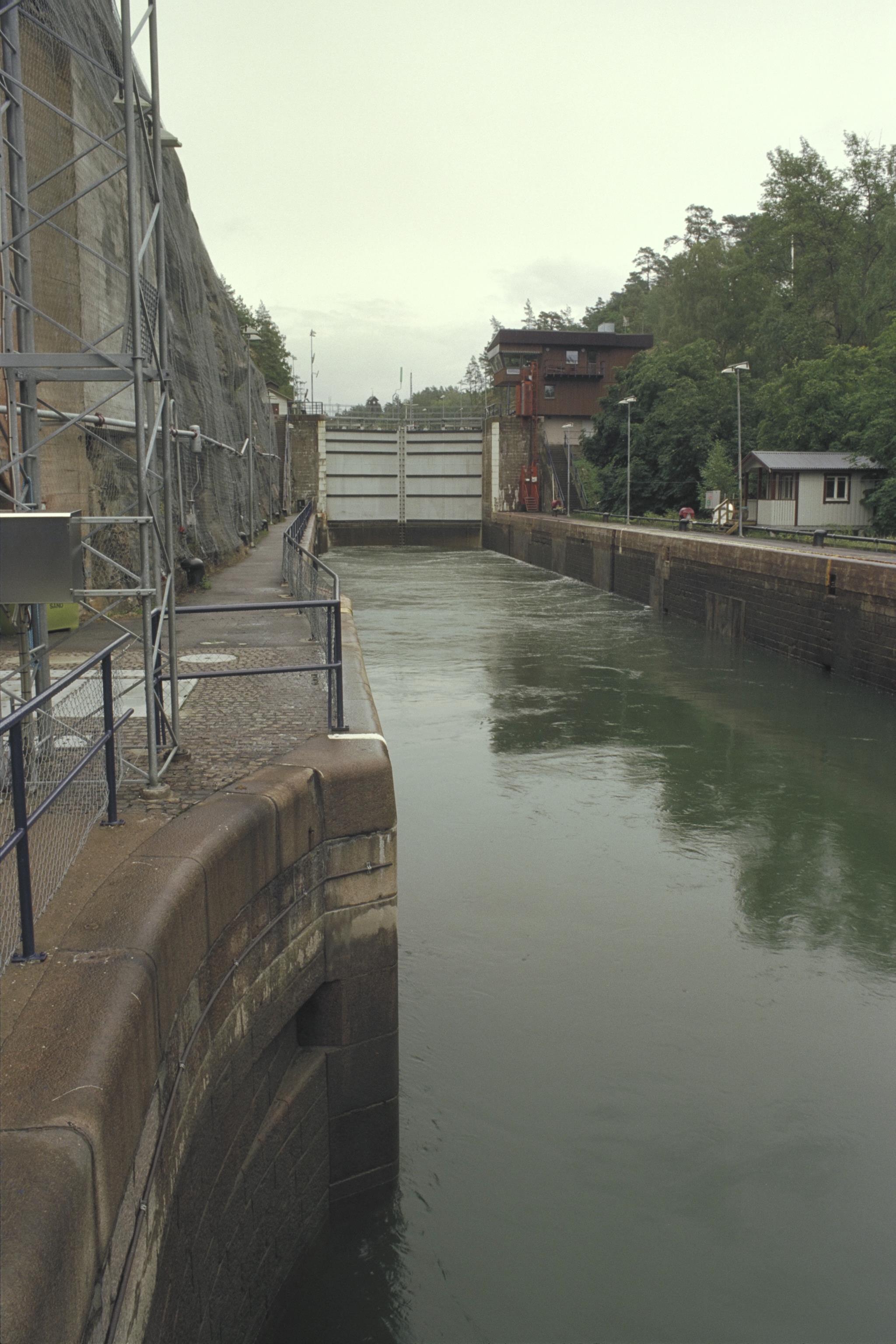 Nedre slussen i 1916-års slussled. Används än idag för trafik. (2010)