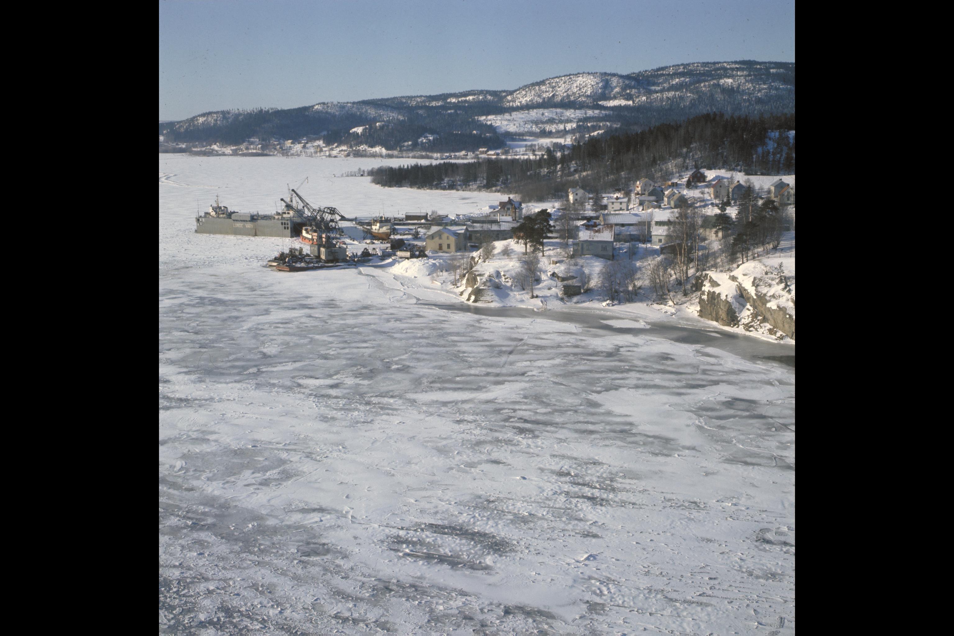 Utsikt från Sandöbron ner mot Lunde varv. Bilden troligen från slutet av 1960-talet.
