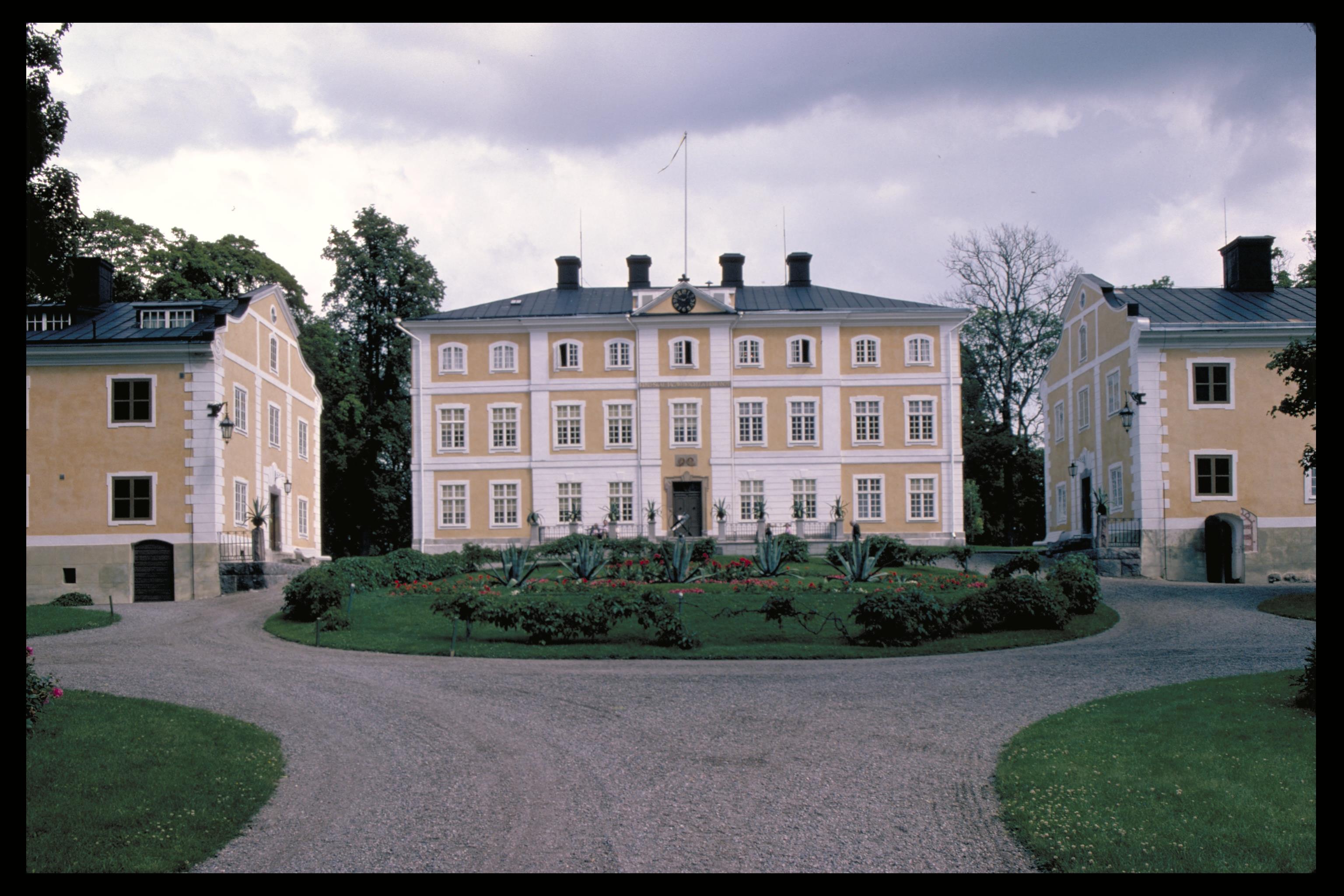 Exteriörbild av mangårdsbyggnaden och flyglarna.