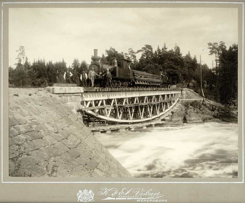 Provbelastning av stålbron över Göta älv mellan Vänersborg och Vargön (dåvarande Rånnum) sommaren 1899.