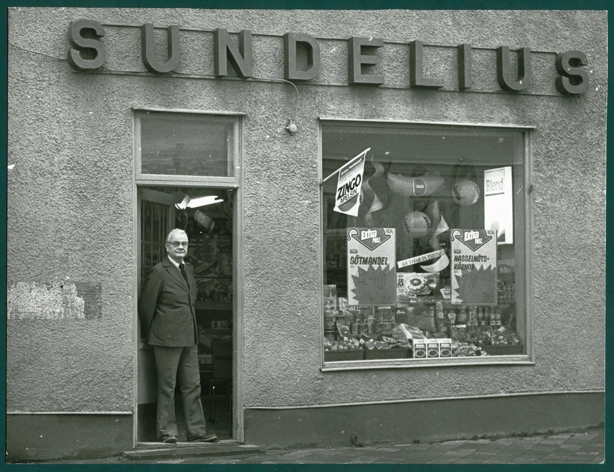 Vänersborg, kvarteret Nässlan. Sundelius affär vid hörnet Kyrkogatan- Sundsgatan