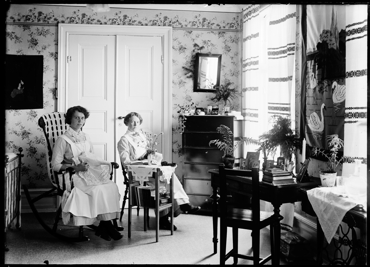 Rumsinteriör med två kvinnor. Vänersborg