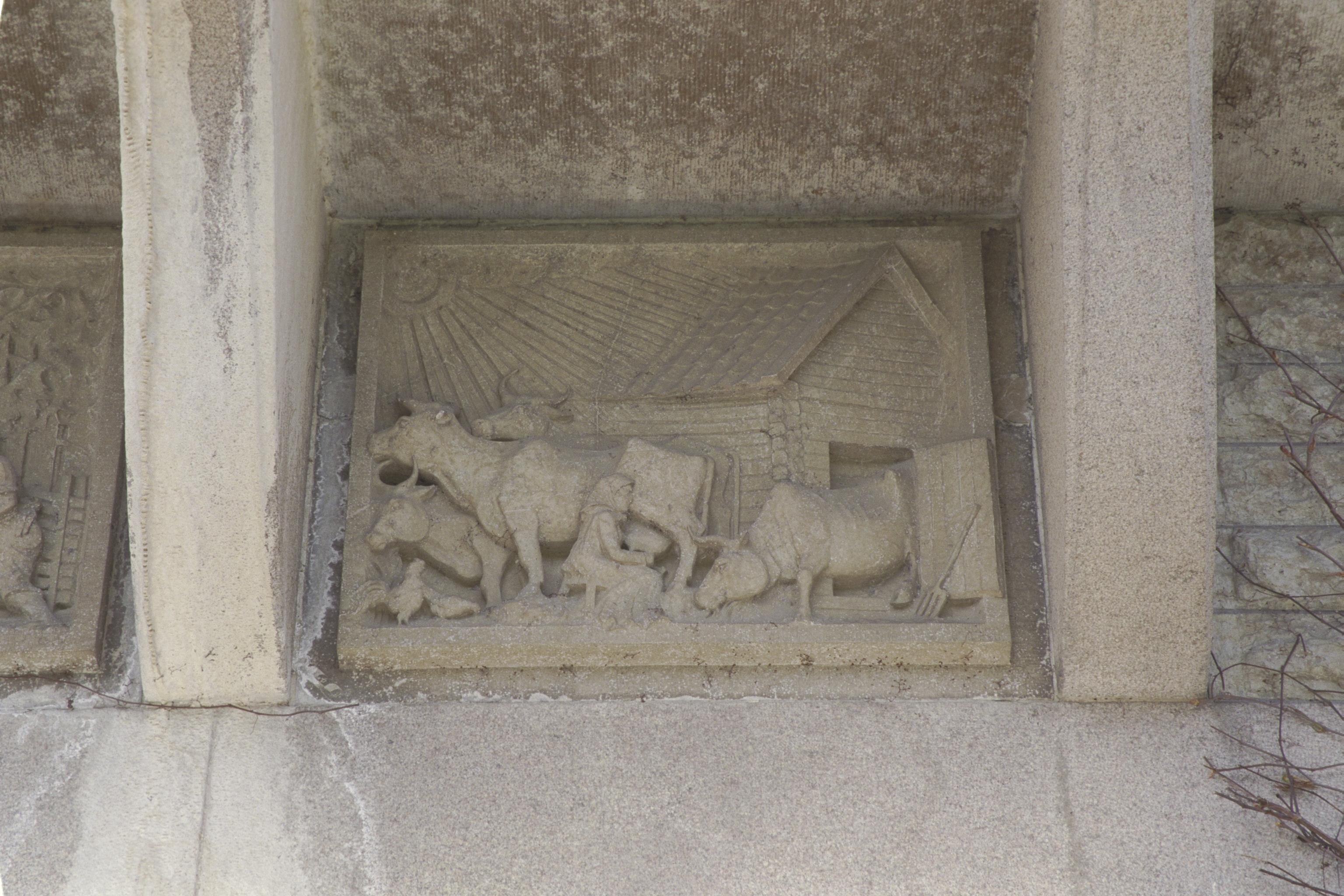 Slottets södra fasad, parkfasaden. Den vänstra balkongens högra relief