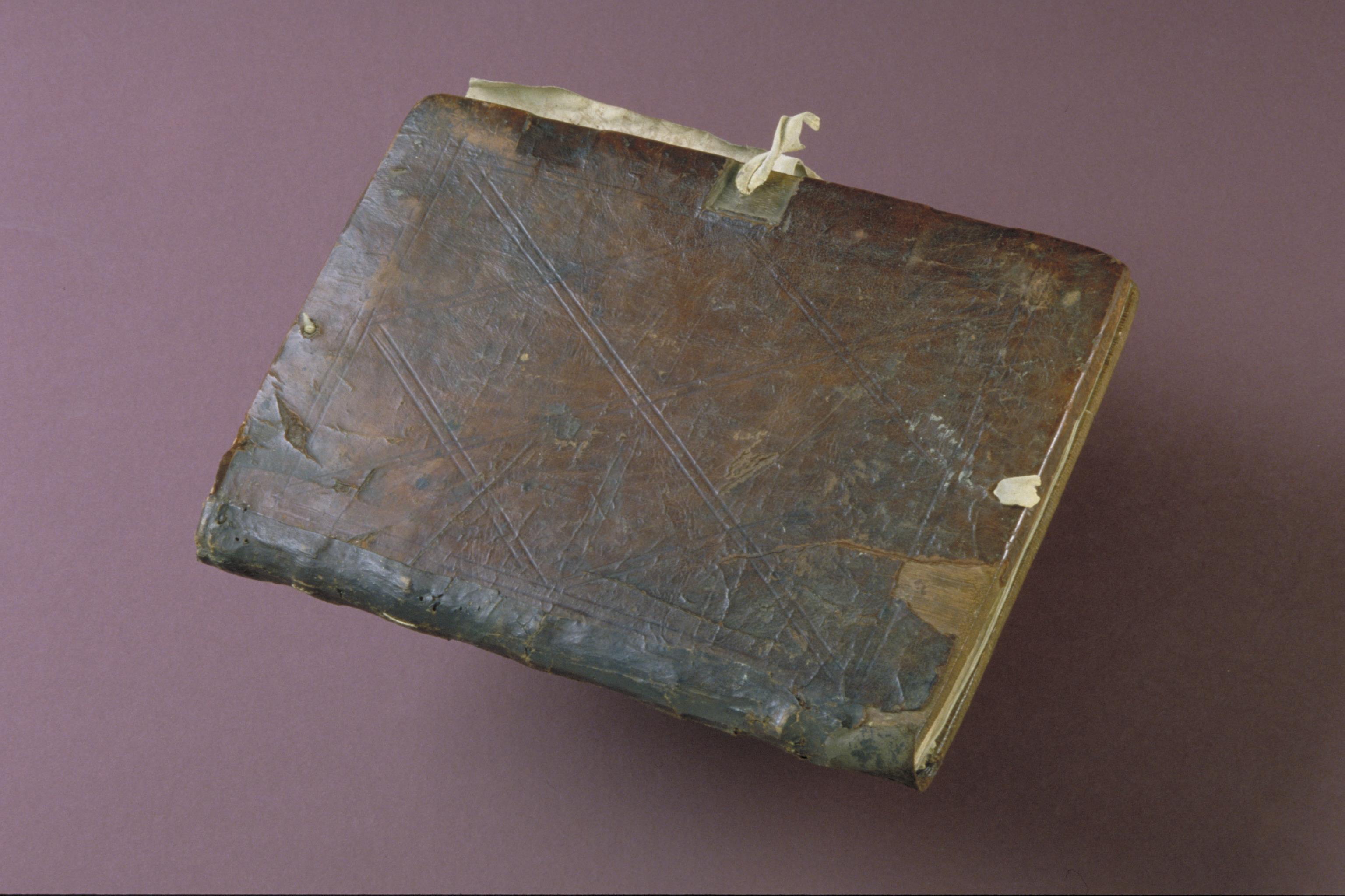 Beskrivning: Handskrift. Frampärmens yttersida.