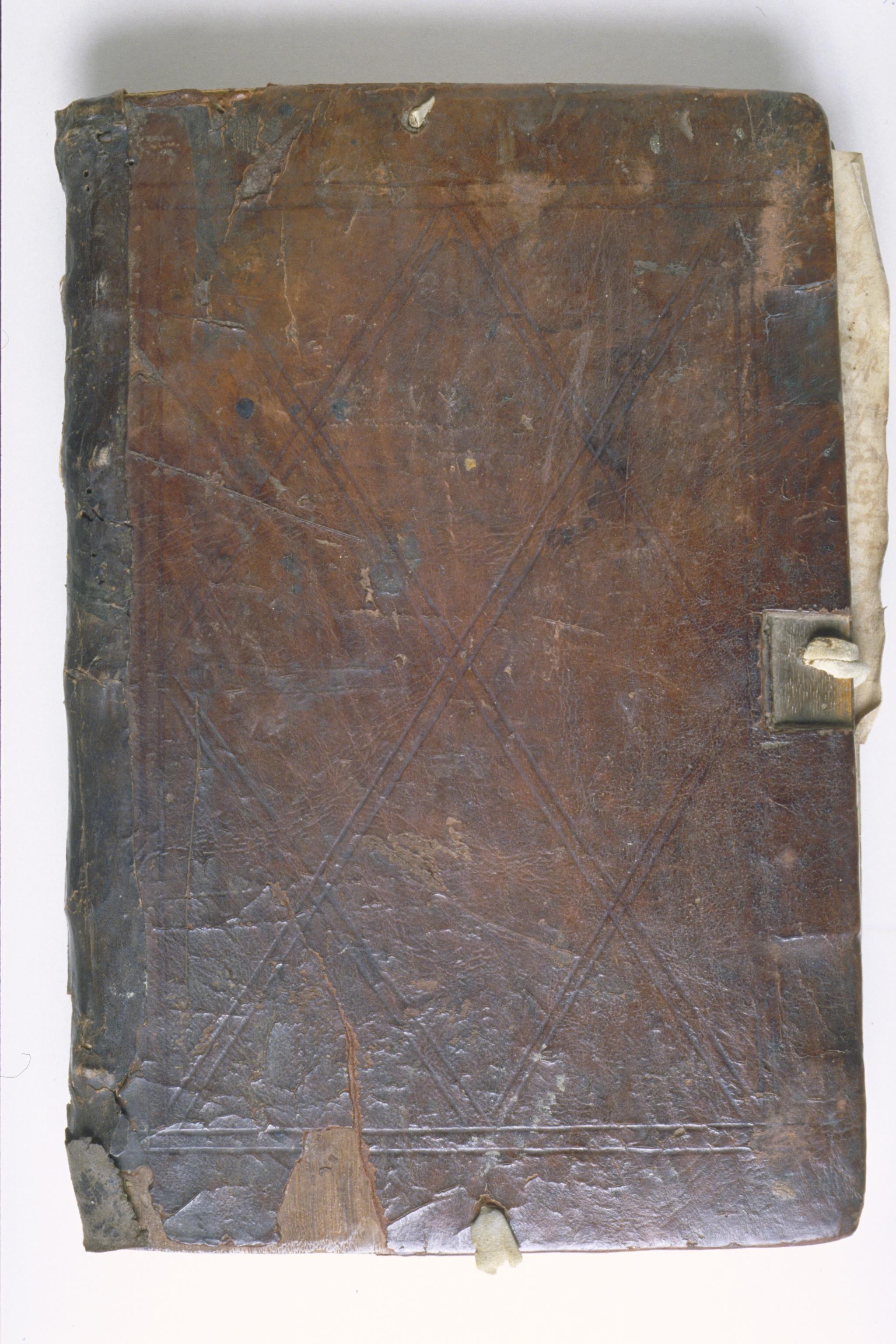 Beskrivning: Handskrift. Frampärmens yttersida.