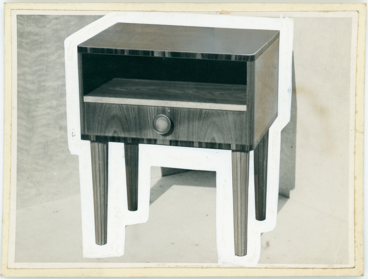 Vänersborg. Elfsborgs läns Dövstumskola, senare Vänerskolan. Gesällprov, nattbord i alm