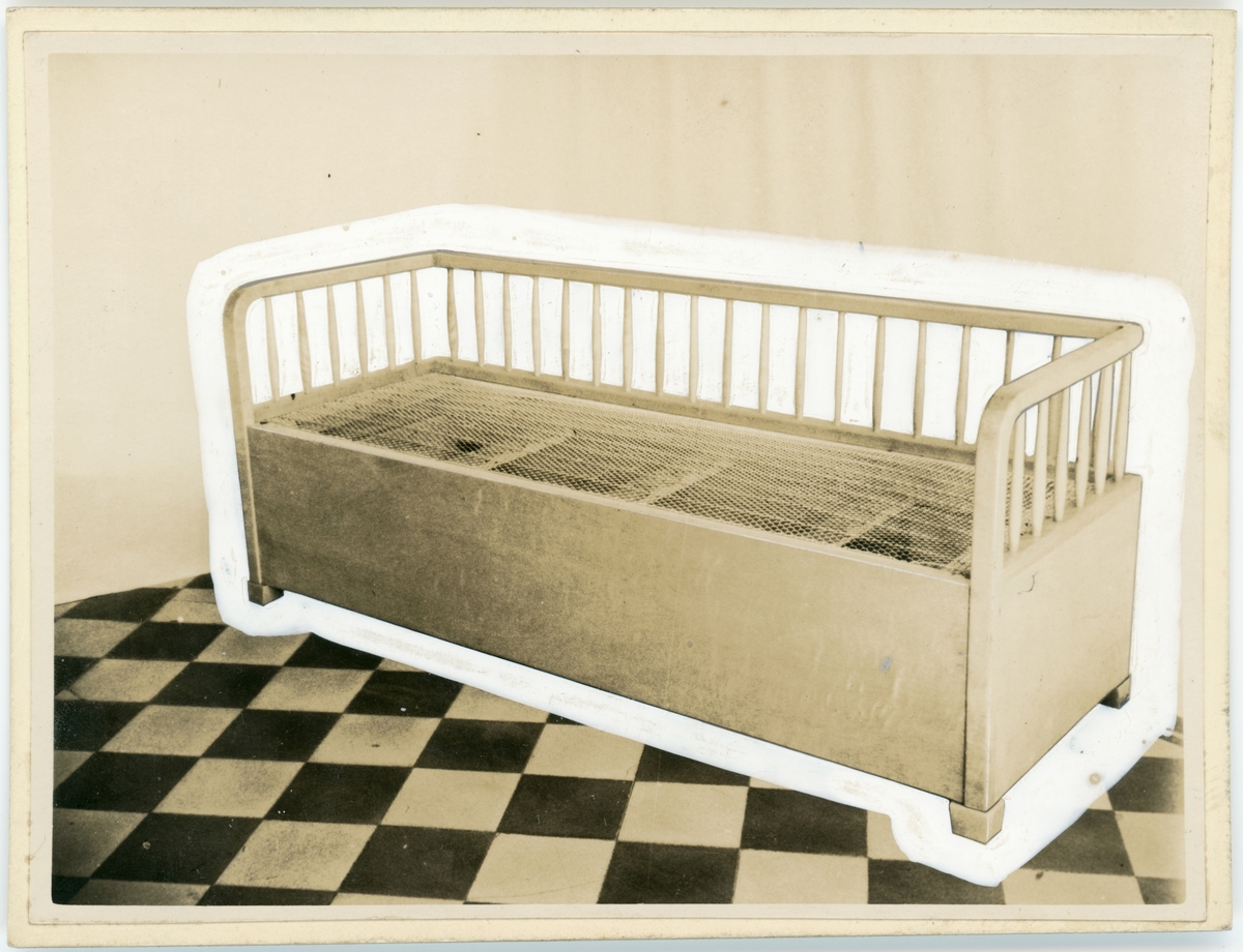 Vänersborg. Elfsborgs läns Dövstumskola, senare Vänerskolan. Gesällprov, soffa med två bäddar