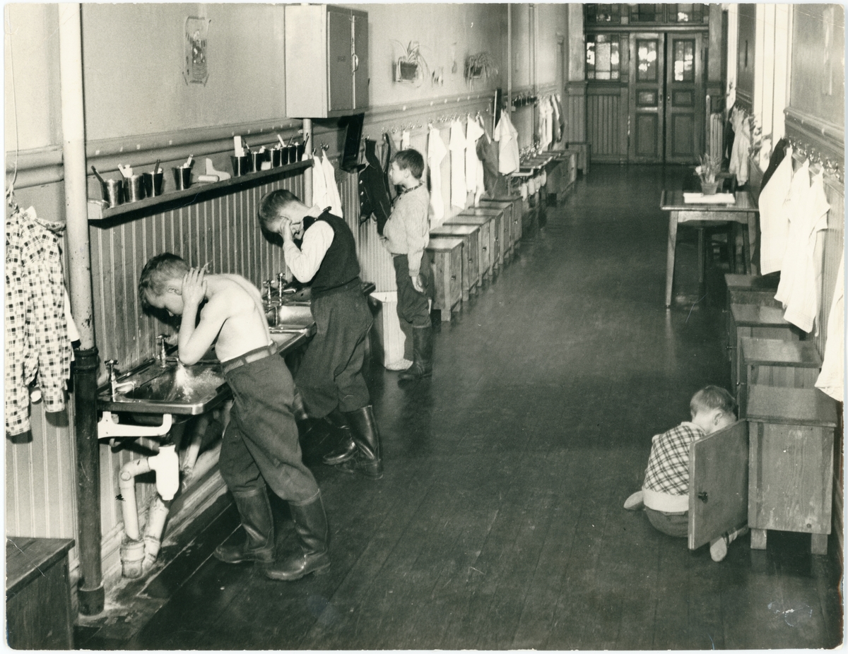 Vänersborg. Elfsborgs läns Dövstumskola, senare Vänerskolan. Tvätt och omklädningsrum i korridor