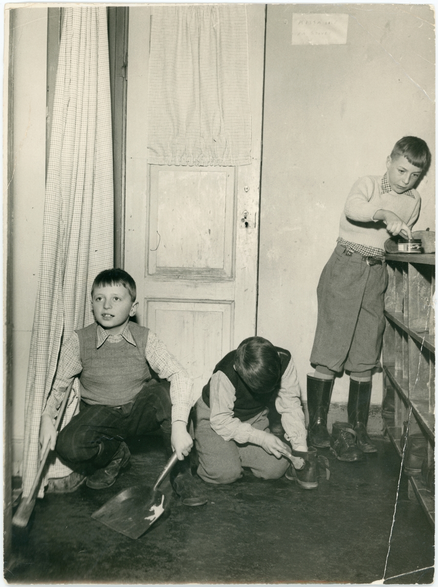 Vänersborg. Elfsborgs läns Dövstumskola, senare Vänerskolan. Skoputsning