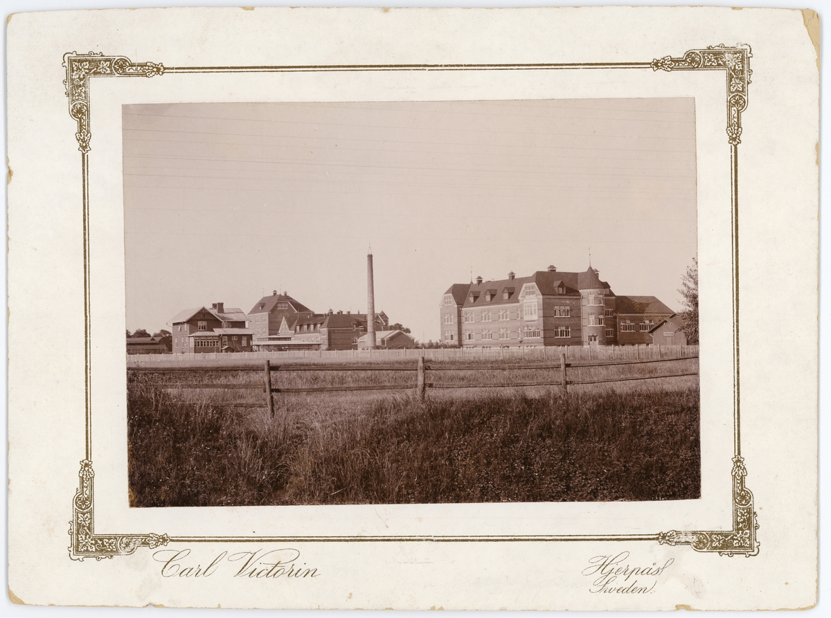 Vänersborg. Elfsborgs läns Dövstumskola, senare Vänerskolan. Skolan sedd från Belfragegatan. Internat t.v, externat t.h.