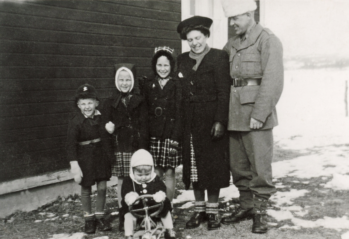 Gesäter, Näs gård. Familjen samlad framför husknuten. Erik Hansson hemma från sin beredskapstjänstgöring