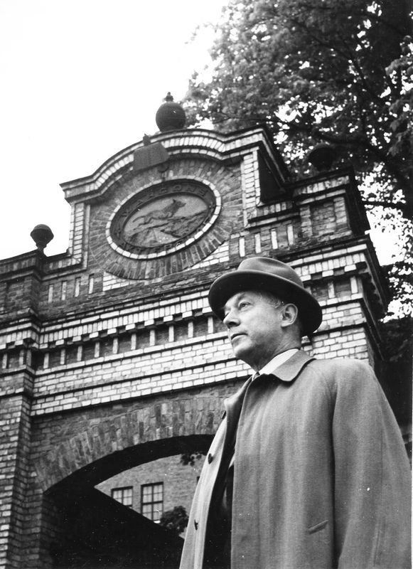 Disponent Helmer de Verdier vid huvudporten till pappersbruket.