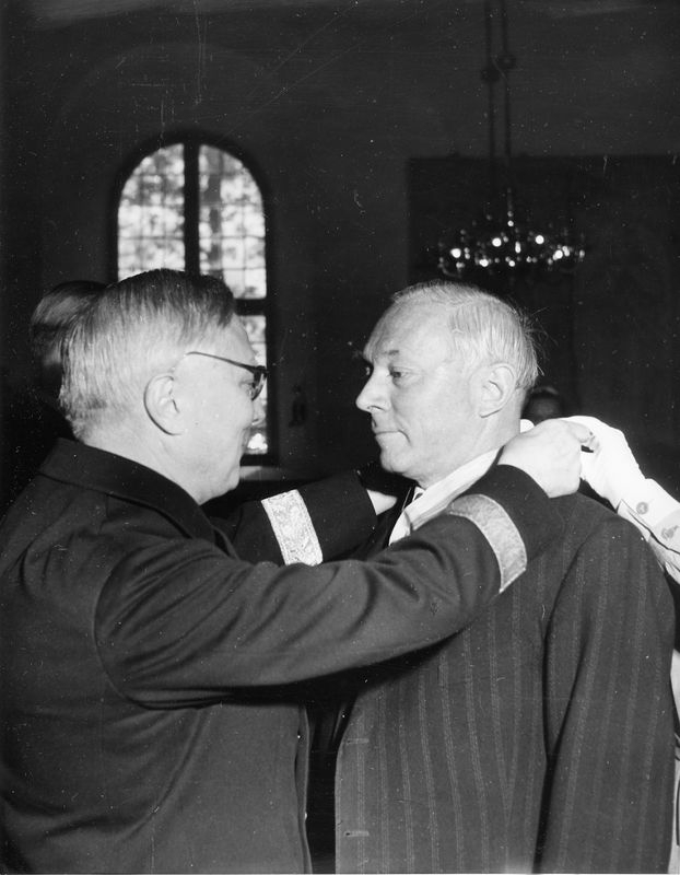Disponent Helmer de Verdier får guldmedalj av biskopen.