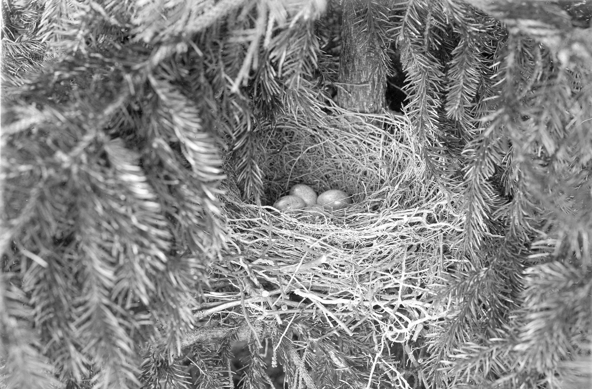Titel: Fågelbo, Nötskrika, Gárrulus g.glandárius. Fotograferat den 25 Maj 1907