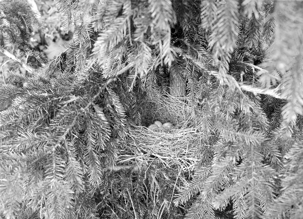 Titel: Fågelbo, Nötskrika, Gárrulus g.glandárius. Fotograferat den 25 Maj 1907