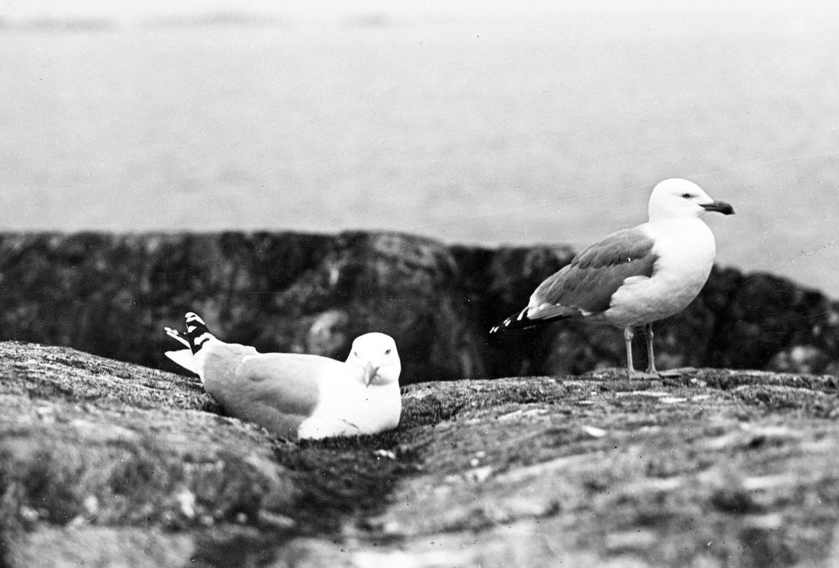 Gråtrut, Larus Argentatus, ett gråtrutspar honan ligger i boet