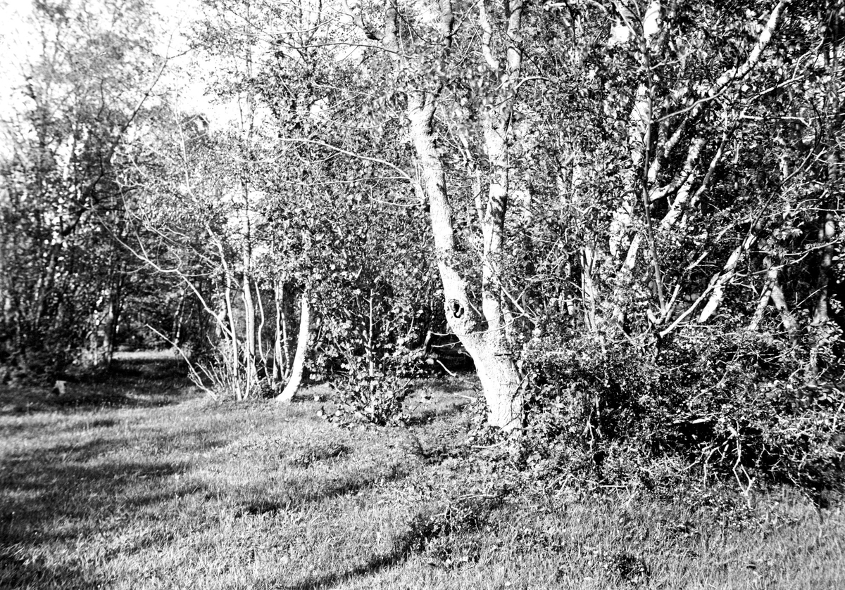 Boplats för Muscicapa collaris, halsbandsflugsnappare. Bokhålet i vänstra trädgrenen mitt i bilden.